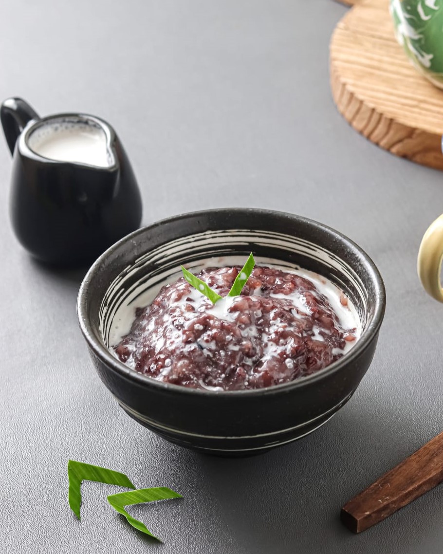 Bubur ketan hitam hangat dengan santan gurih, <br> tekstur lembut legit, manis pas, cocok dinikmati kapan saja.